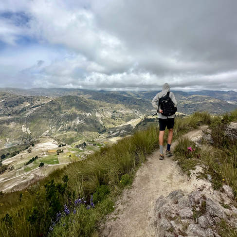 Once in Ecuador, I first spent about ten days acclimatizing, a process of progressively hiking to higher elevations to adapt to the altitude. First up was the Quilotoa Loop, an incredible three-day trek through remote villages in the Ecuadorian countryside. My trekking partner was my French friend Anatole, who I’d first met in Peru. We’d previously trekked the 8-day Huayhuash Circuit together, along with our friend James, who I’d been traveling with at the time. After the Huayhuash, Anatole had come straight to Ecuador, where he’d been volunteering on a cacao farm (whatever that means) ever since. He’s one of the strongest hikers I know, so simply keeping up for three consecutive days was the best Pakistan training I could possibly conceive of. Here we are on the final day: