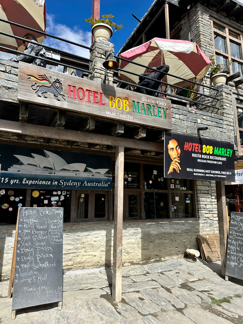 Stevie and I celebrated with a glass of wine at my favorite (and also the strangest) tea house of the trip, the Bob Marley themed tea house in the village of Muktinath: